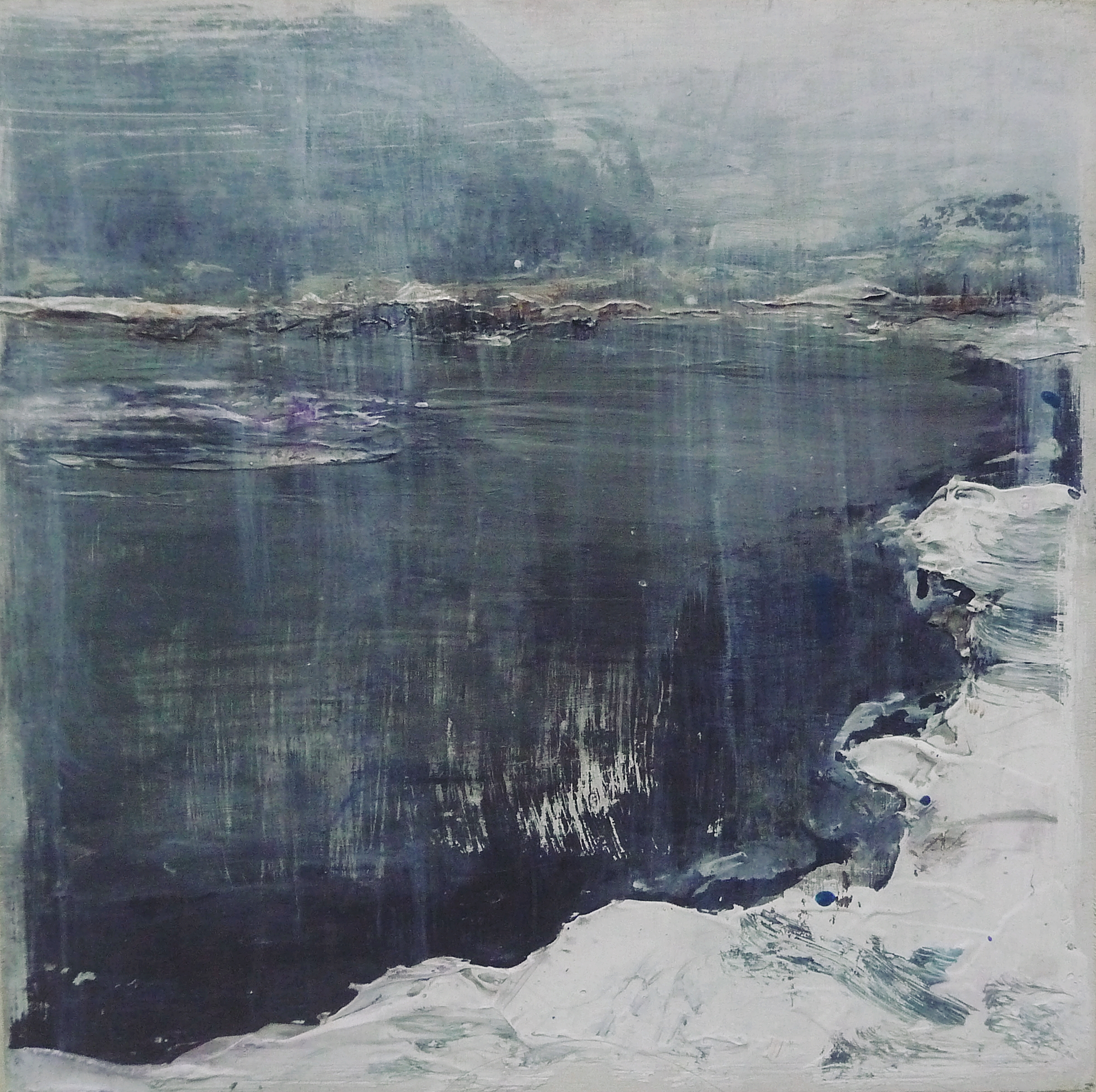 Hunter’s Loch. Edinburgh Winter ← Previous Next → ‘Hunter’s Loch. Edinburgh Winter. Mixed media on 10×10″ wood. Rose Strang 2021