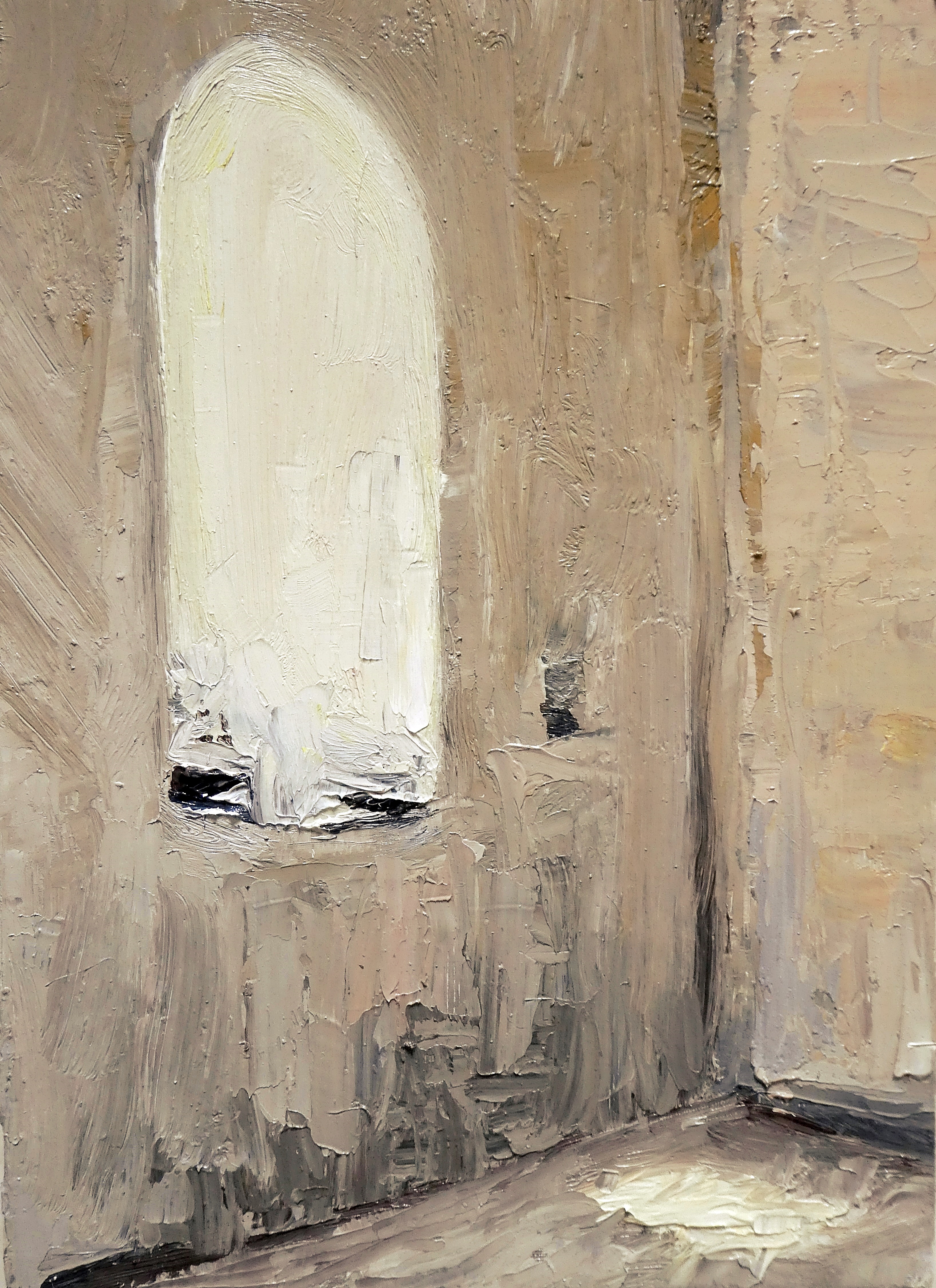 St Oran’s Chapel, Iona 3. Oil on 5×7″ wood. Rose Strang 2023