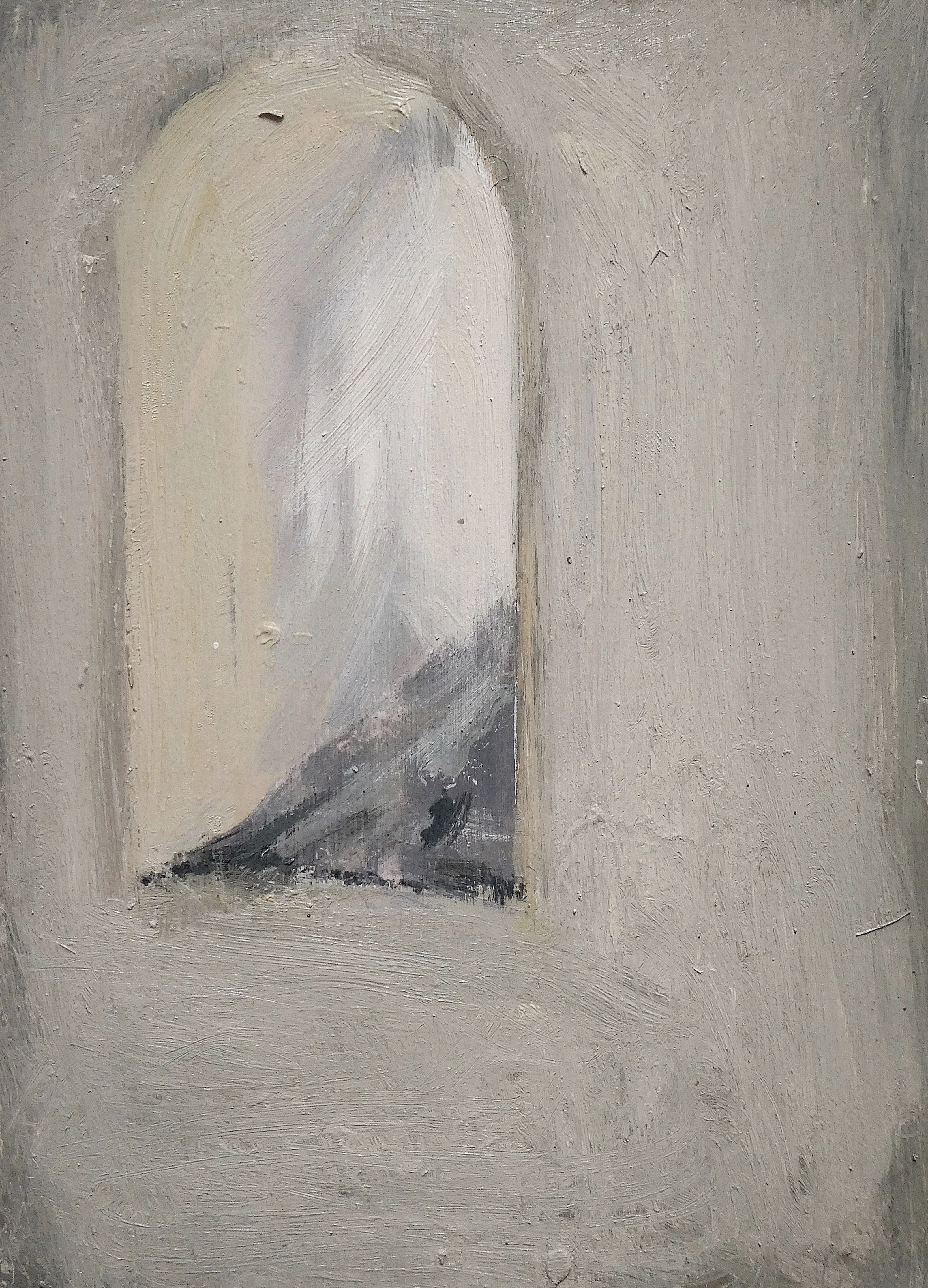 St Oran’s Chapel, Iona 1. Oil on 5×7″ wood. Rose Strang 2023
