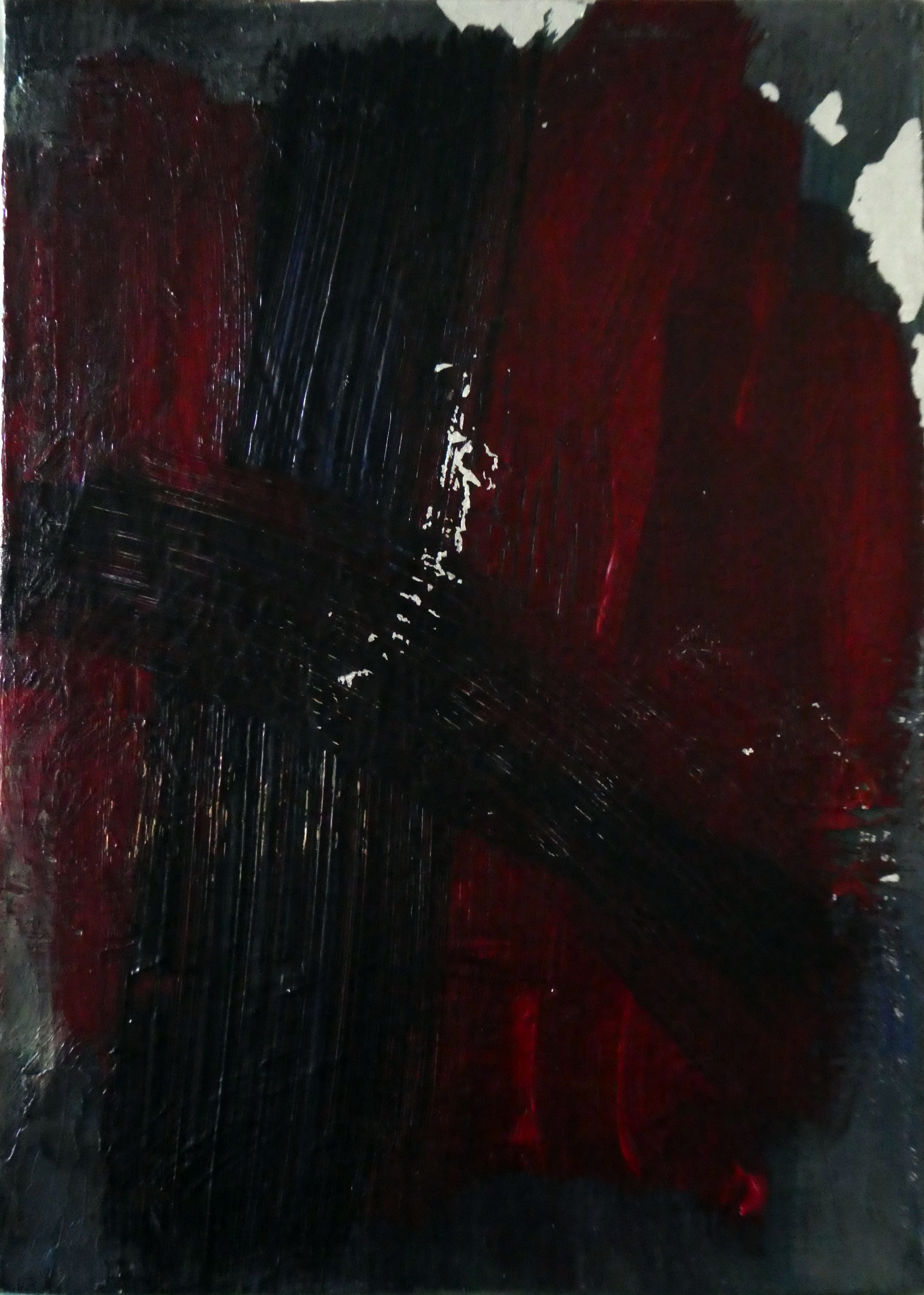 ‘Icon II. Oil and silverleaf on 8×4″ wood. Rose strang 2024