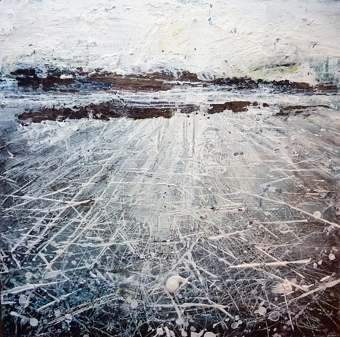 Winter 9, Skating. Mixed media on 10×10″ wood panel. £150