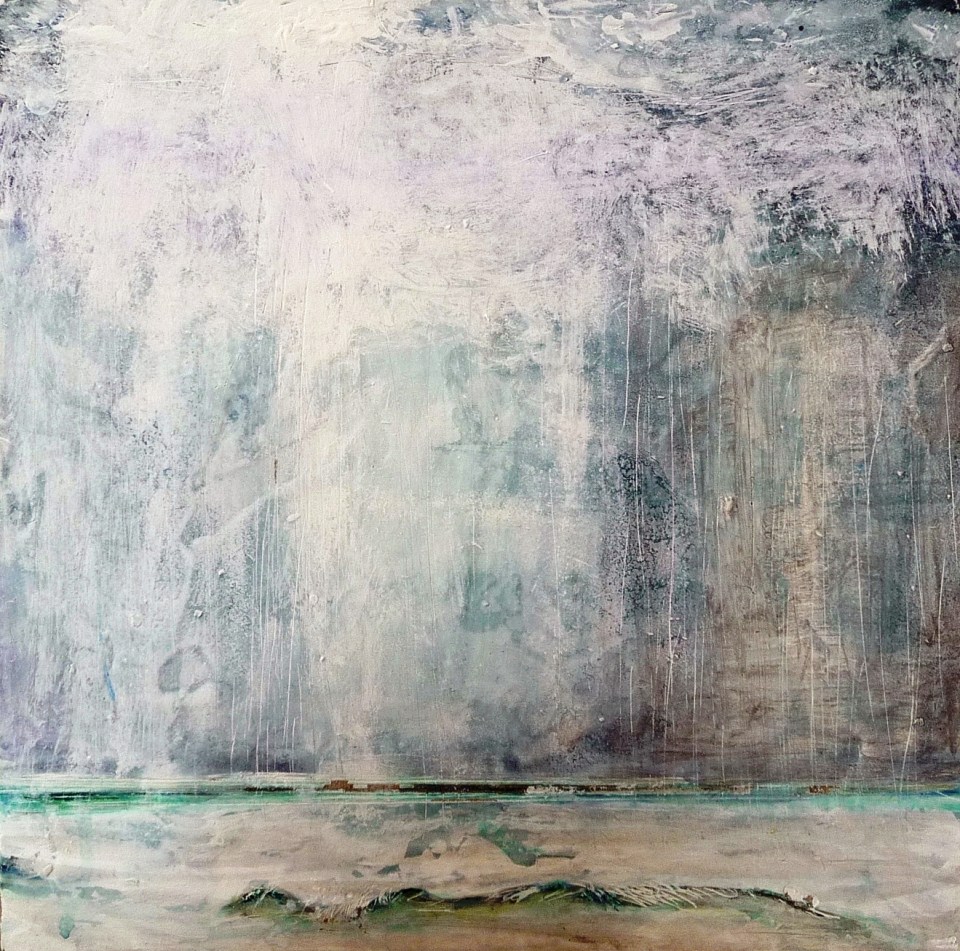 Rain Shower. Acrylic and ink on 10×10″ wood