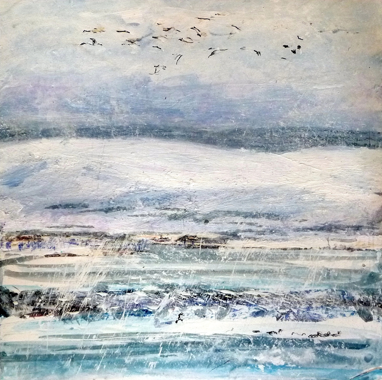 Snowgeese 2. Acrylic and ink on 10×10″ wood