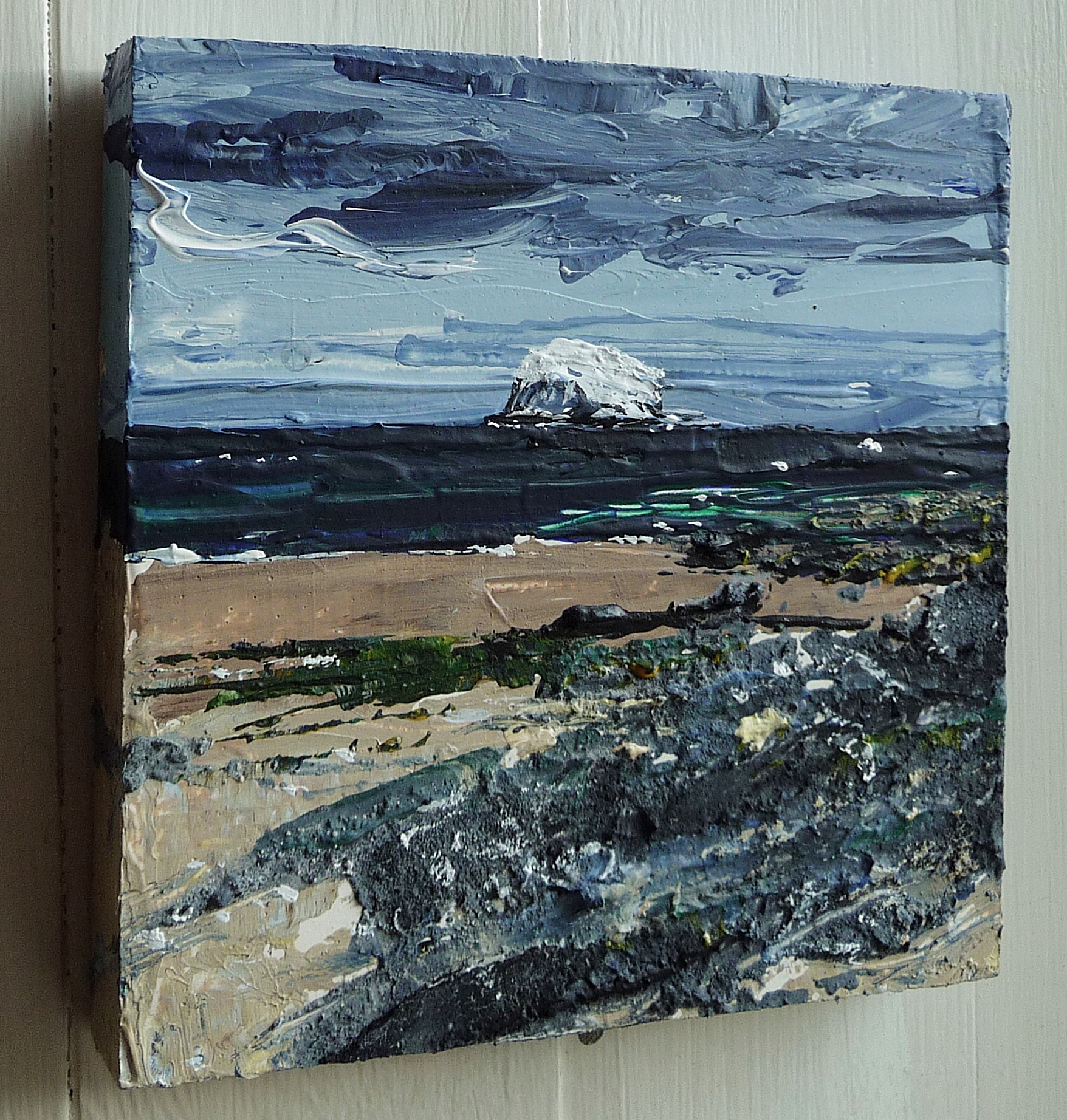I had to create the obligatory Bass Rock painting, not that it’s a chore since I love the shape of the Bass Rock, but when I’m at the beach it’s the rock pools I find fascinating.
