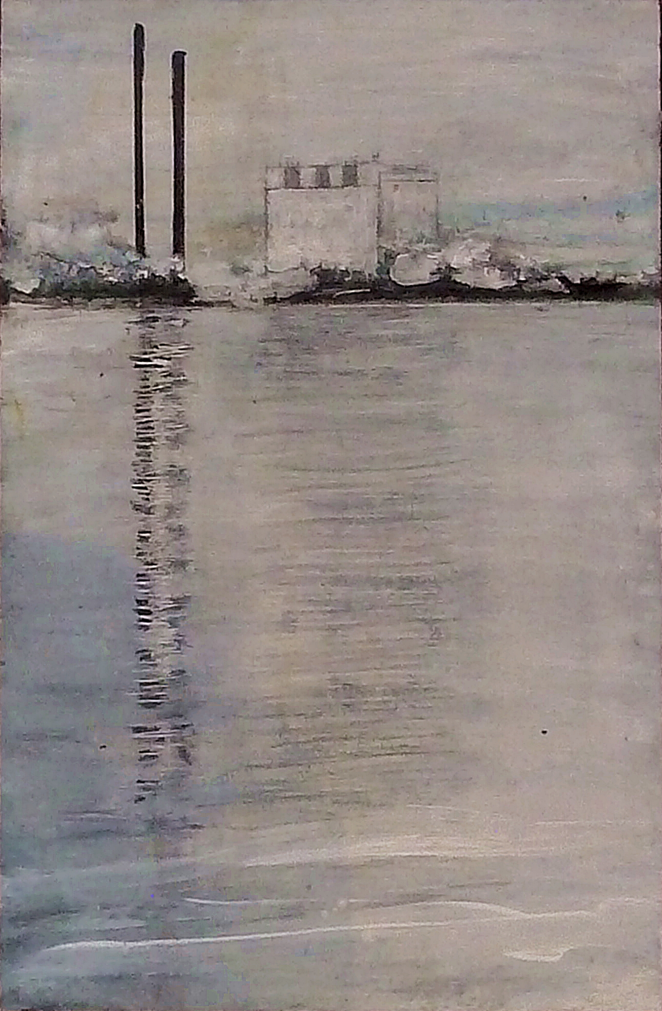 ‘Cockenzie Power Station, 26th September 2015′. Mixed media on 17×11″ wood panel (Original £400, sold. Ltd Ed’ print £65)