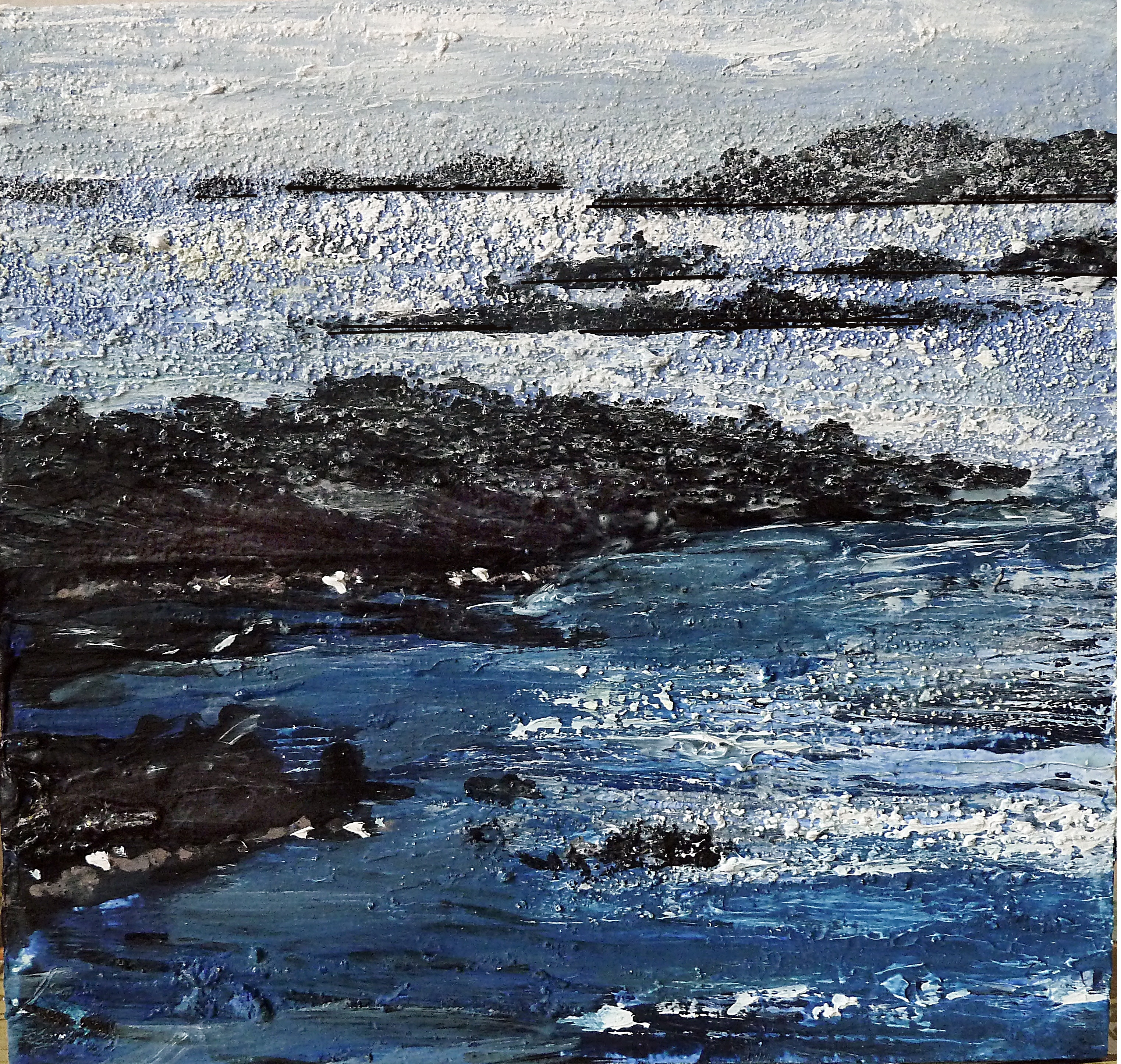 ‘West Coast, Harris 1’. Mixed media on 14×10″ wood panel