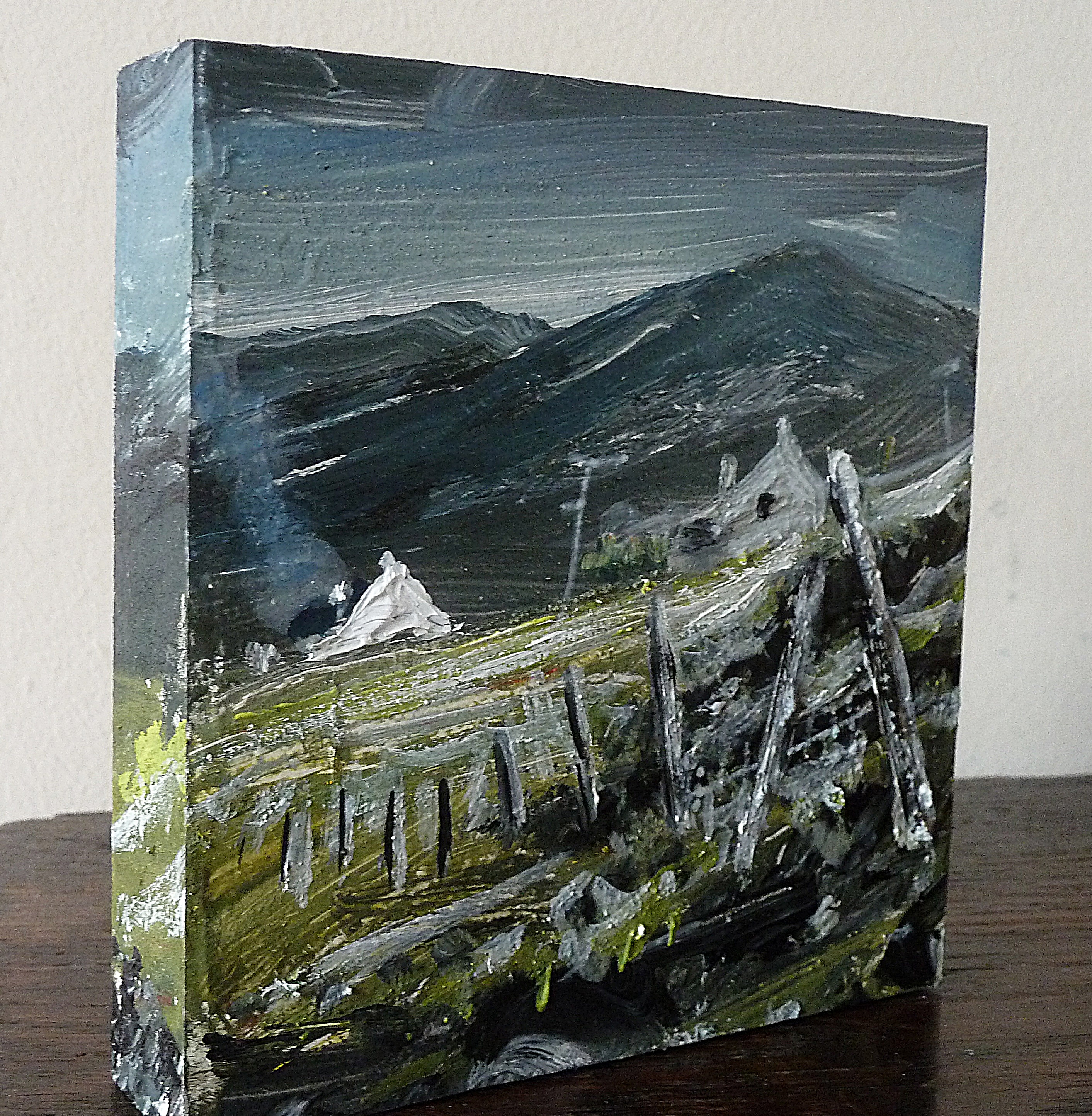 Houses at Scarasta, Isle of Harris, West Coast. Mixed media on 5×5″ wood block