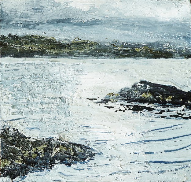 Scadabay, Isle of Harris. East Coast. Mixed media on 5×5″ wood block