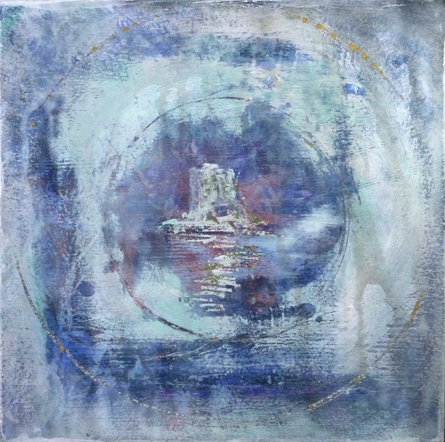 These small paintings are proving an excellent way to explore ideas on an easier scale before tackling the large paintings for the Planets Series. I think my Moon-influenced painting (above) is suitably amorphous, watery and undefined, though I’d want to add more of the moon’s moonliness to the larger painting.