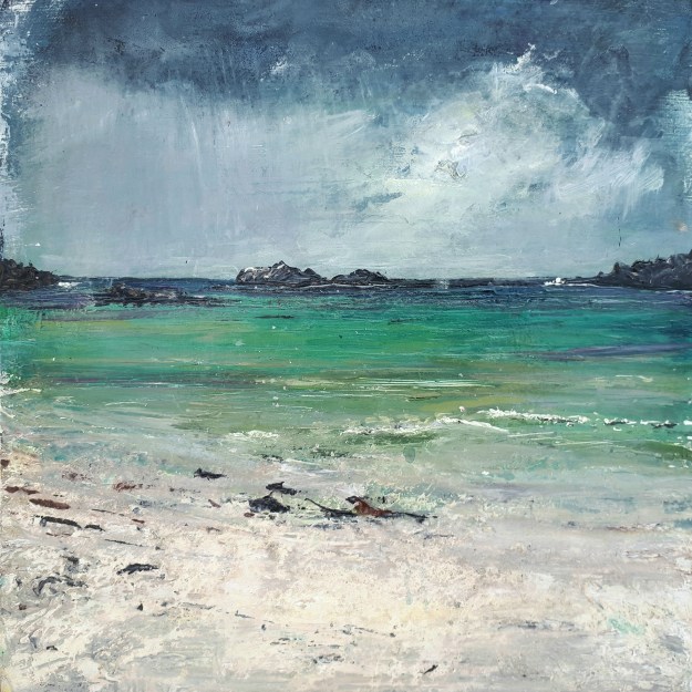 ‘North East Coast, Isle of Iona’. Mixed media on 10×10″ wood panel (unframed). Rose Strang 2018. £300