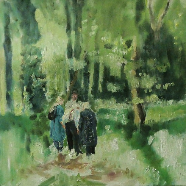 ‘First of June. Forest of Luffness 8’. Oil on 19.5×19.5″ wood. Rose Strang 2025