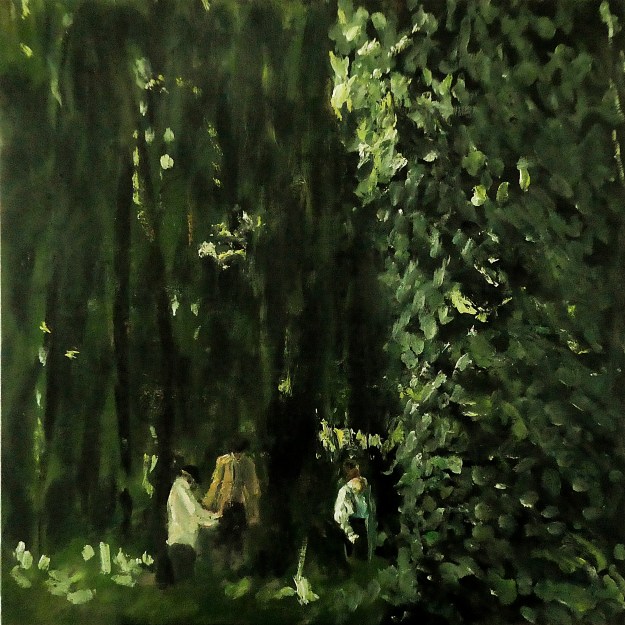 I can never capture in traditonal or realist paintings that feeling of mystery. Abstracting this painting a little, and painting from a place where I’m thinking of colour, shape and texture rather than what’s actually there, maybe gives more of a sense of that feeling.