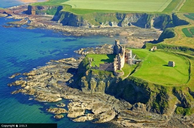 It’s built in the beautiful warm pink sandstone of Lothian, so the castle, lit by an early sunset glow against the backdrop of wild sea, is a truly romantic sight.