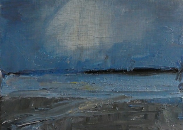 The painting above is from a series I’m painting of my impressions of Coigach and Achiltibuie where we stayed for a few days back in May. I’ve always loved the impressions of landscape that remain in imagination after driving through it. One of my favourite artists, Ilse d’Hollander, had a similar approach – she’d cycle through the countryside of Holland, then return to the studio to create semi abstract impressions. A ‘painter’s painter’ as she was described, she wanted to say a lot with little, more about distilled memories of her short journeys. A sense of space, or light, or distance for example.