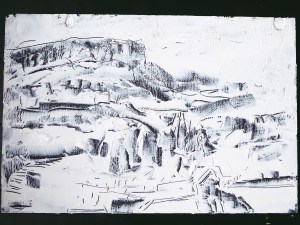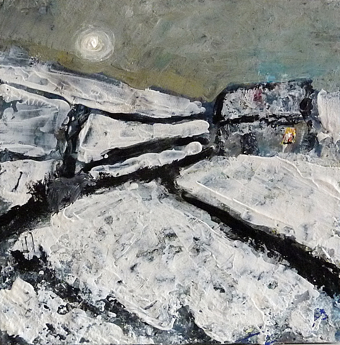 This was definitely not what Sheri Gee was looking for, nor was I. I knew what she was looking for because of the selection of paintings she sent me as examples of why she’d chosen my work. They were paintings I’d created over recent years that were mostly inspired by literature or music. None were commissions – they were all self-motivated experimental works from imagination, mostly taking the form of semi abstract landscape. I was intrigued by Sheri’s selection, because these were paintings I’d struggled over – to create something meaningful. The process had had no known outcome at the start of each painting. I wondered how I’d manage to keep this very loose experimental and intensive approach while also expressing something of Nan’s descriptions and vision; it felt like a bit of a creative tightrope to me.
