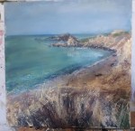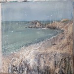 Sold. ‘Waves in the Rain, Singing Sands Bay’. Acrylic and ink on 40×30″ canvas. Rose Strang 2014